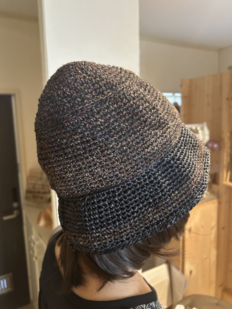 お好きな帽子、ニット帽などで大丈夫ですが、髪の長さがある場合はこんな感じで少し帽子に余裕があると良いですね